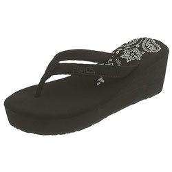 Put spring into motion with the new Jasmine. A fresh look on a comfortable 2 1/2 inch wedge which has a padded sock for comfort and paisley print left and right sock designs.