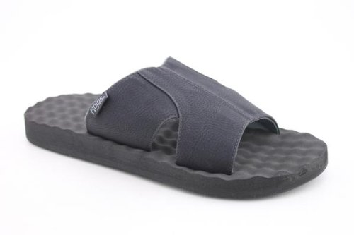 Men's slide sandal with a vegan leather strap and and egg crate bottom. Perfect to slip on after a round of golf.